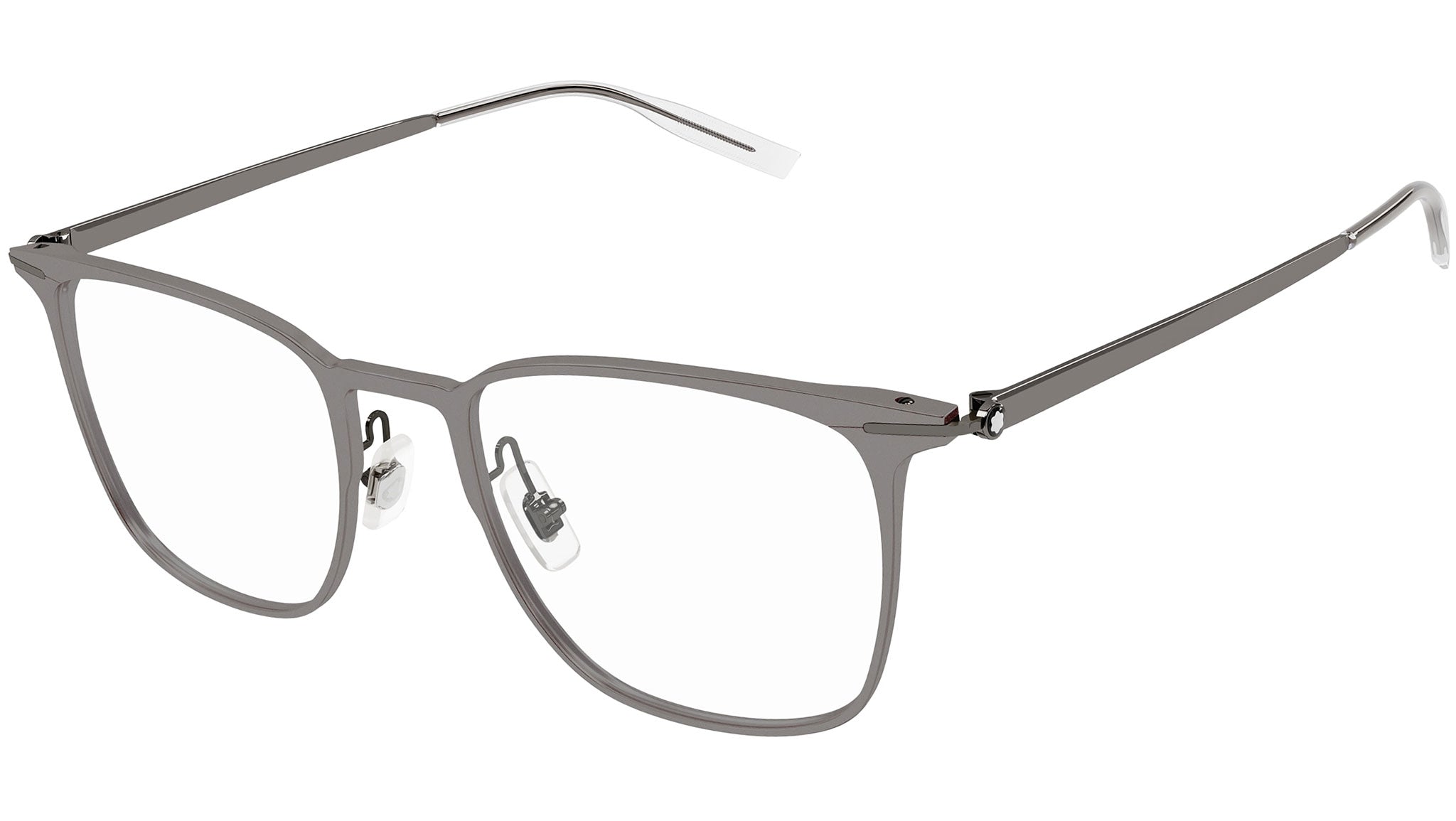 Occhiali da vista Montblanc linea Established modello MB0232O variante colore rutenio scuro semiopaco con astine color lenti demo.