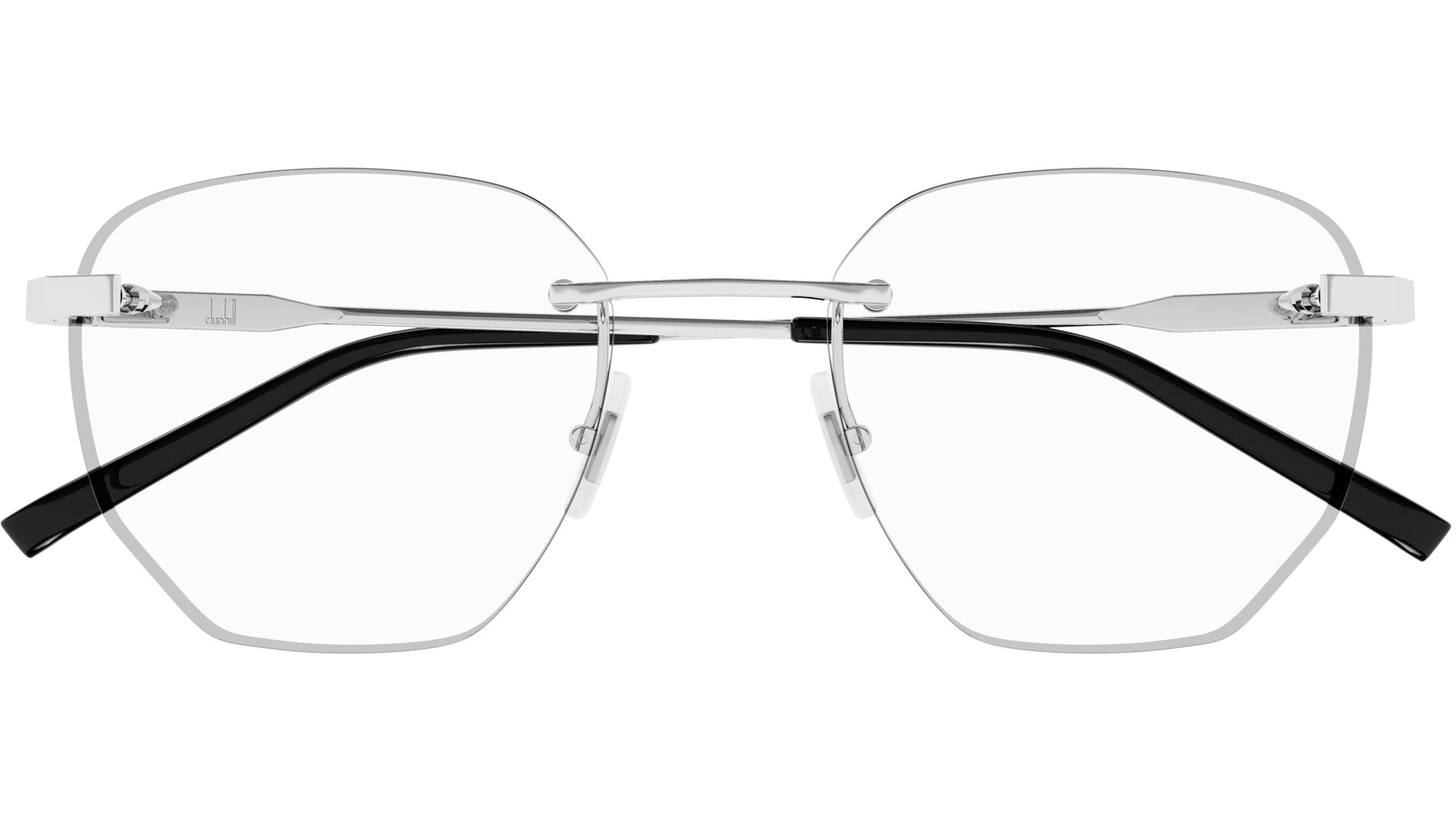 Occhiali da vista Dunhill modello DU0066O variante colore 004 argento lucido con astine color argento.