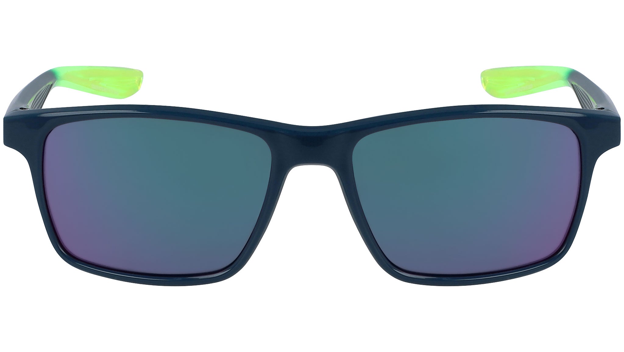 Nike Whiz line sunglasses model EV1160-300 featuring shiny solid midnight turquoise frame and green mirror lens.