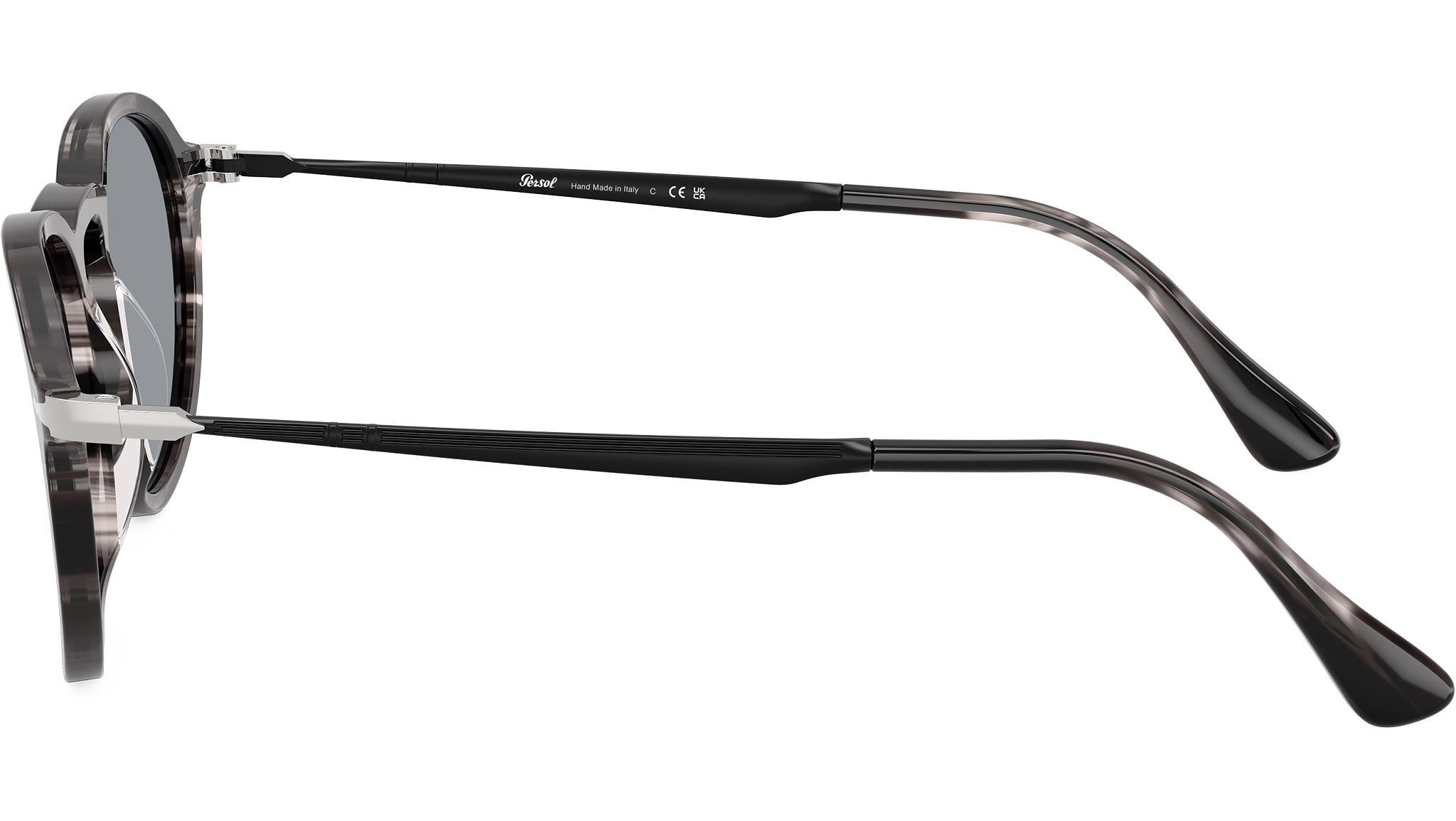 - Colore montatura nero striato e grigio