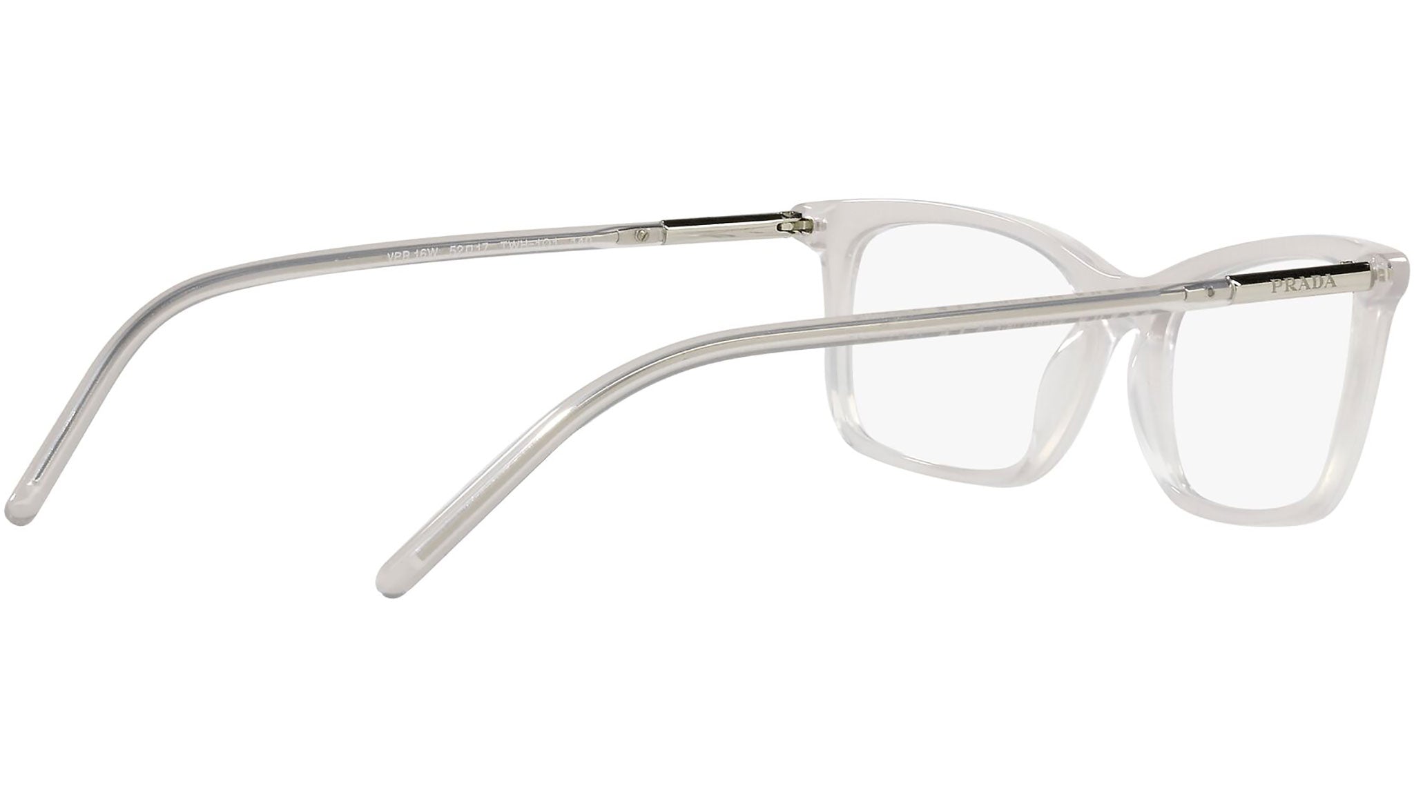 Occhiali da vista Prada modello PR16WV variante colore grigio opale, codice colore TWH1O1. Prada rappresenta il vertice della tradizione e della moda Italiana. È uno dei brand più innovativi, prestigiosi e più riconosciuti nel mondo del fashion e degli accessori di lusso, massima espressione della cura per i dettagli, emblema di stile, nella sua raffinata interpretazione dei nuovi trend della moda internazionale.