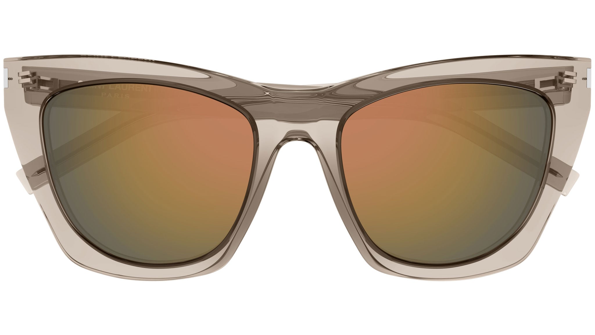 Occhiali da sole Saint Laurent linea New Wave modello SL 214 KATE variante colore 023 nude trasparente lucido con lenti color beige nude.